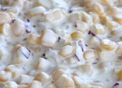 1. A sajtot, almát egy-másfél centis kockákra vágom vagy vágatom :P A lilahagymát felaprítom. Ezeket összeönthetjük a kukoricával egy tálban.